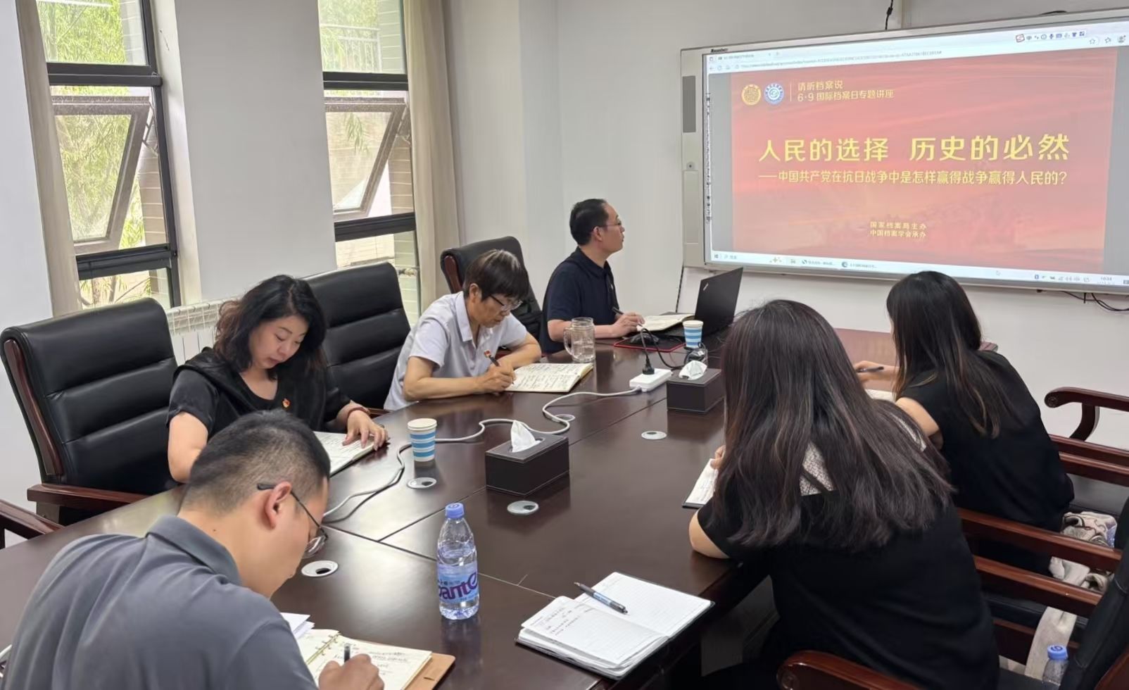 党委办公室(院长办公室)、档案馆工作人员在第六会议室集中观看,学校全体兼职档案管理员线上观看。