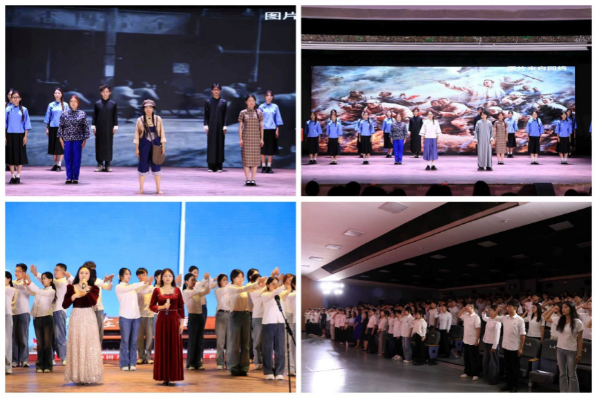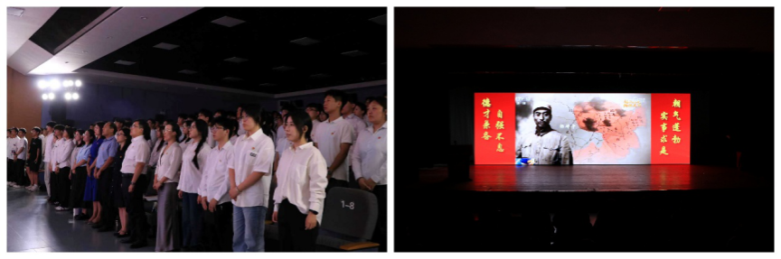 情景朗诵《不可忘却的纪念》将现场氛围推向高潮。朗诵者以饱满的情绪和铿锵的语调,带领观众重回烽火岁月,深刻感受先烈们不屈不挠、英勇奋斗的革命精神。青春合唱《天耀中华》以悠扬而坚定的歌声,表达出对祖国繁荣昌盛的真挚祝福与对民族复兴的坚定信心。活动最后,全体在场团员青年庄严重温入团誓词。誓言铮铮,回荡会场,彰显了同学们为共产主义事业而奋斗的坚定决心。“抗战先烈们用血肉之躯铸就了今日和平之基,我们必当铭记历史,矢志奋斗,以青春之行践行时代使命。”学员代表成宇哲如是说。