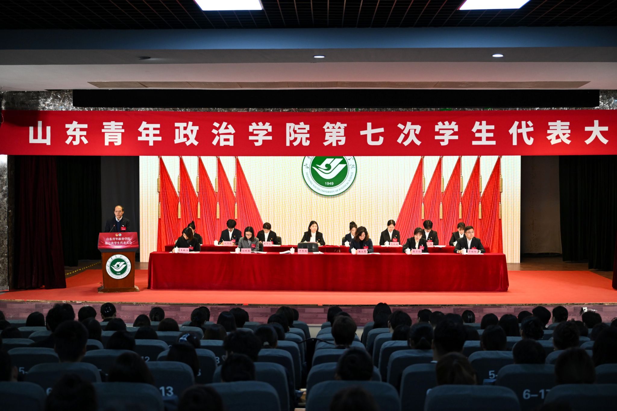 青春逢盛世,奋斗正当时。12月20日,山东青年政治学院第七次学生代表大会在大学生活动中心胜利召开。学校党委委员、副院长于秀国出席开幕会并讲话。全校各学院的226名正式代表参加会议。