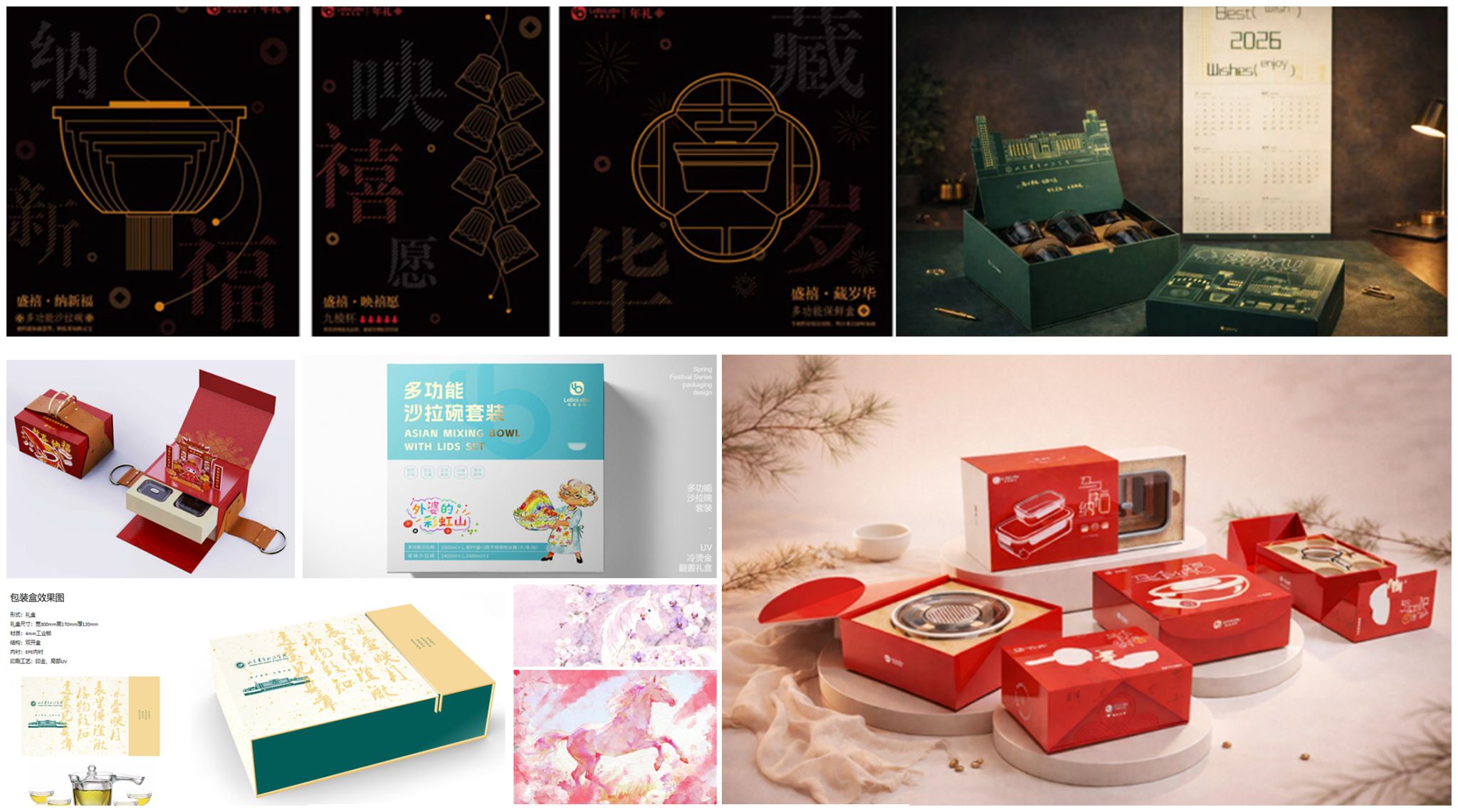 本次工作坊以企业真实市场需求为导向,精心设置核心任务,涵盖企业“灰鲸系列”保鲜套装、多功能沙拉碗套装、九棱杯直柄茶具套装及“山青校礼”等,要求设计兼具节日氛围、品牌文化与商业价值。