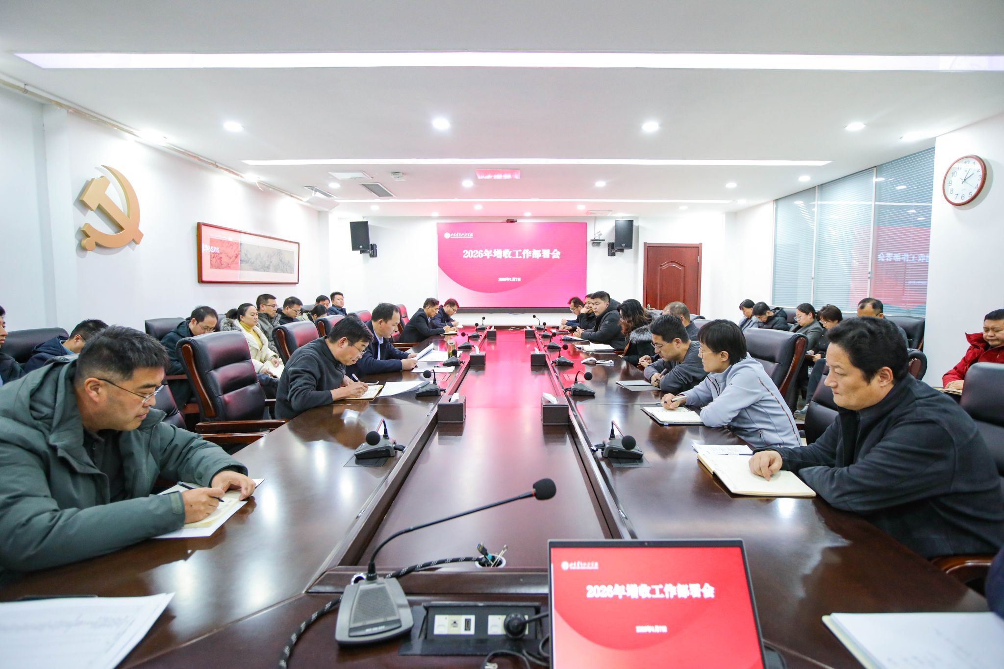 1月7日下午,学校在第七会议室召开2026年增收工作部署会。党委副书记、院长辛杰出席会议并讲话,各单位主要负责同志参加会议。会议围绕如何进一步拓宽办学资源渠道,系统总结了2025年增收工作成效,重点对2026年增收工作作出部署。