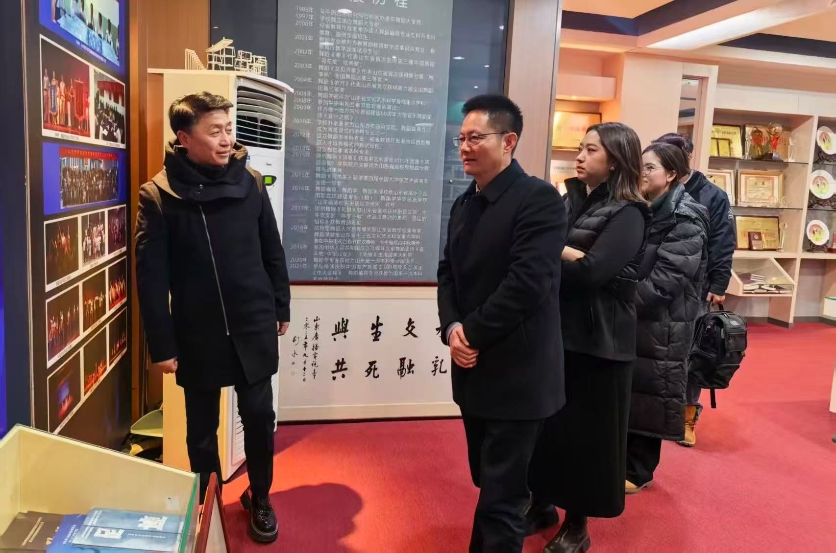 会后,夏欣才一行先后参观了舞蹈学院教学成果展示室、设计艺术学院实践教学中心及文化传播学院实训基地,对我校扎实的实践教学条件、鲜明的育人特色和丰硕的教学成果给予高度评价。