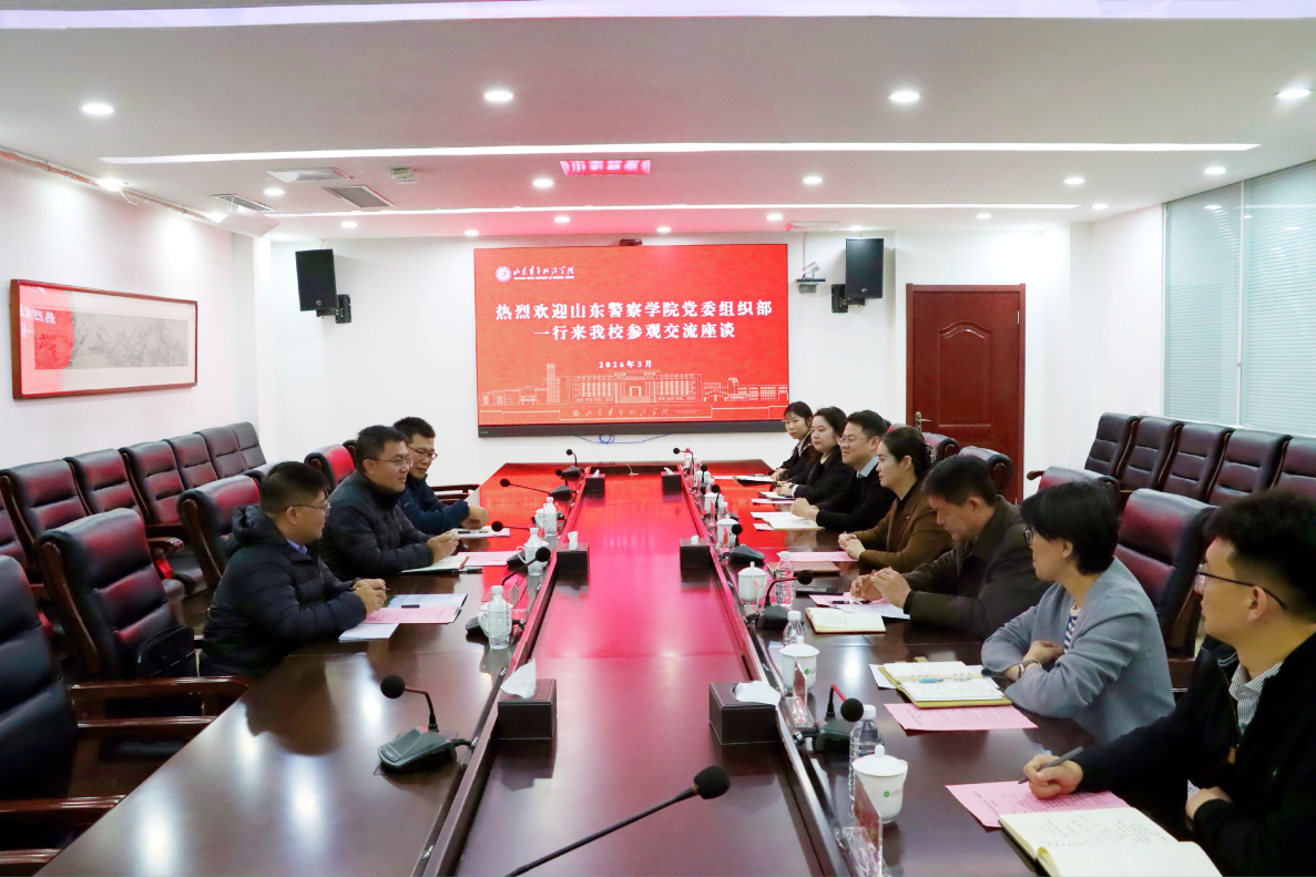 3月13日下午,山东警察学院党委委员、组织部部长孟宪炜等一行来我校开展调研交流。双方围绕校内巡察、党建“双创”及年轻干部培养等工作,进行了深层次、多角度的探讨与分享。会前,学校党委副书记冯素玲亲切会见了孟宪炜一行,与大家见面交流,对兄弟高校来访表示热烈欢迎。学校党委组织部(党校)相关负责同志参加座谈交流。