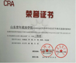 第七届全国大学生市场调查与分析大赛由教育部高等学校统计学类专业教学指导委员会和中国商业统计学会共同主办,自2016年10月启动,历经7个月,吸引全国29个省、自治区、直辖市322所高校28827名同学参加,最终有133所本专科院校的213支队伍、937名学生入围总决赛。我校经济管理学院《共享单车对自行车购买意愿的影响》《济南市自然风光类景区游客满意度的影响因素研究》两作品脱颖而出,最终荣获二等奖。参赛学生展现出良好的营销策划、市场调查、数据处理与分析、团队合作等方面的能力,开拓了视野,提高了专业技能。