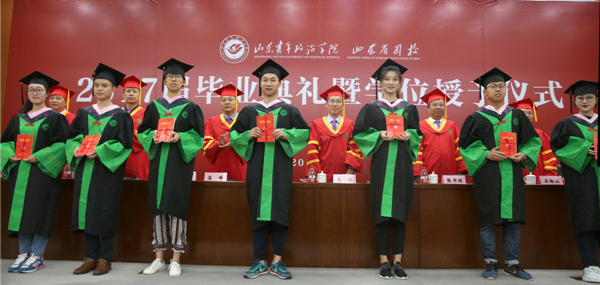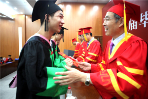 毕业典礼上,学校学位评定委员会主任、党委副书记、院长张书明宣读授予本科毕业生学士学位的决定;副院长刘涛宣读了表彰优秀志愿者、优秀毕业生的决定;与会领导为优秀志愿者、优秀毕业生代表颁发了荣誉证书。随后,校领导为2017届毕业生代表颁发学位证书、授予学位。