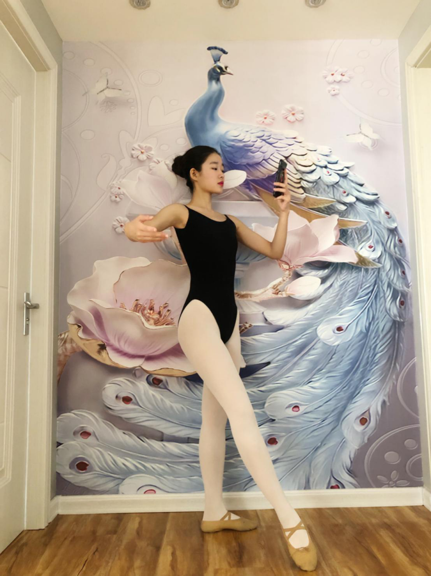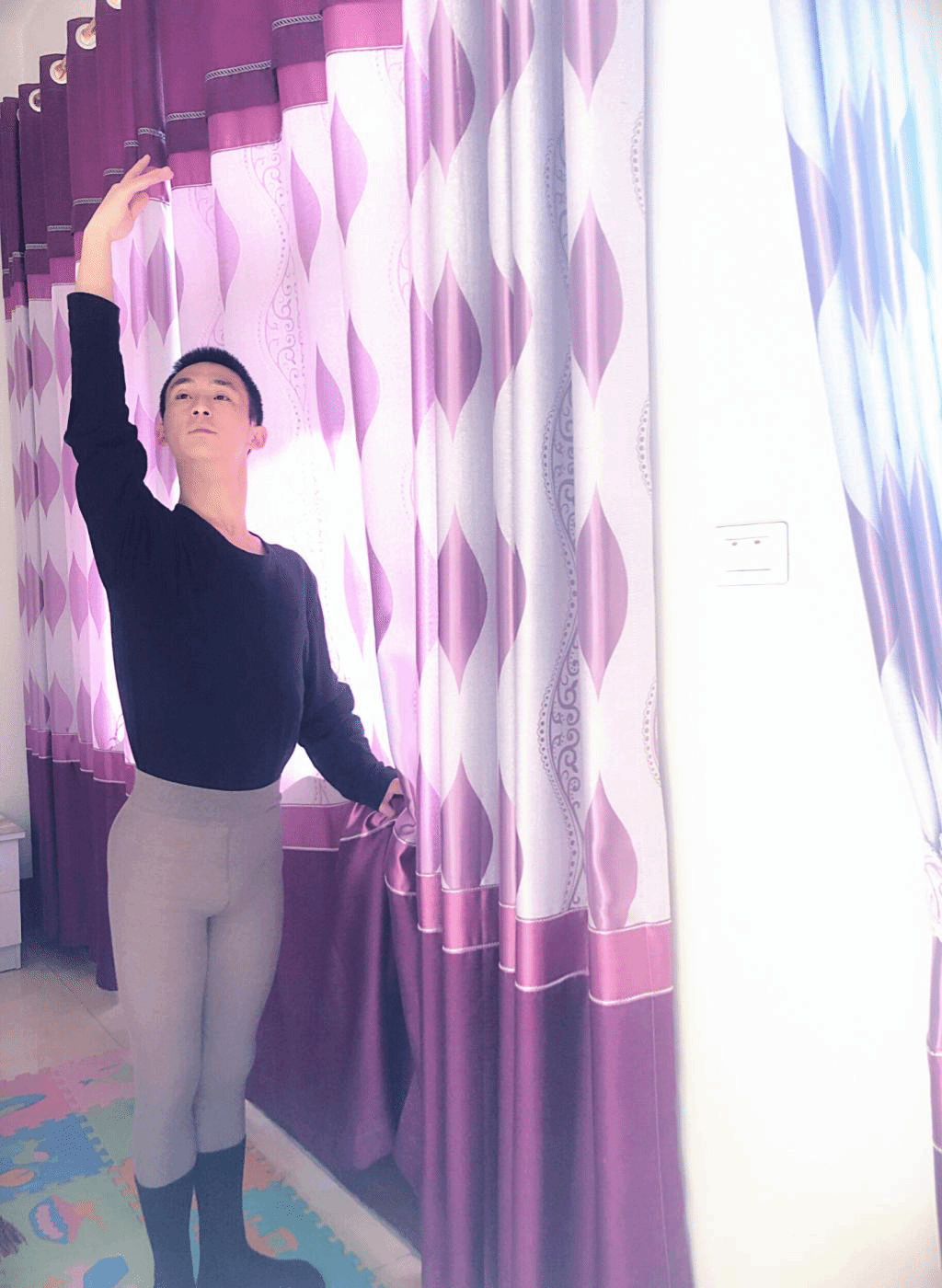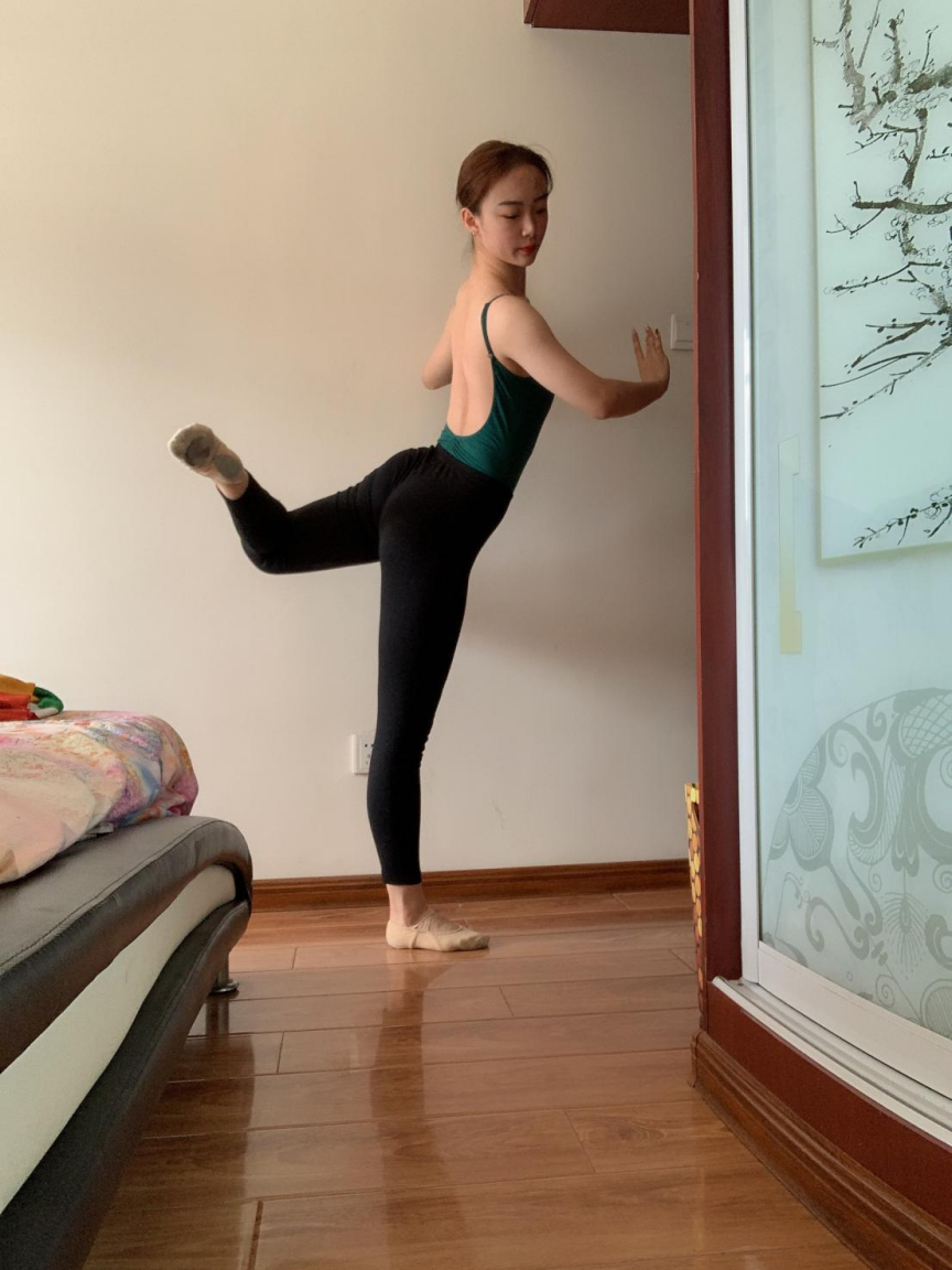 2018级舞蹈编导专业学生丁荣翔说:“专业老师第一时间下发了居家学习内容,布置的学习任务很明确,这对于我自己是一个挑战,不像是在课堂上能直接模仿老师的动作,而是要拿着手机跟着视频一个一个地学下来。关于芭蕾基训,本周我学习了两个组合分别是《擦地组合》和《蹲》的组合,提升了我的腿部肌肉能力和后背控制能力。关于古典舞基训,本周我学习了两个组合分别是长达5分钟的《活动组合》和难度性较强的《踏步蹲》组合,这两个组合锻炼了我舞姿腰部的拉伸和膝关节的屈伸练习。由于在家没有把杆、条件有限的环境中,学习起来有一定难度,组合、动作我初步学习下来,老师指导我说要强化舞姿的美感和坚持基本功锻炼。”