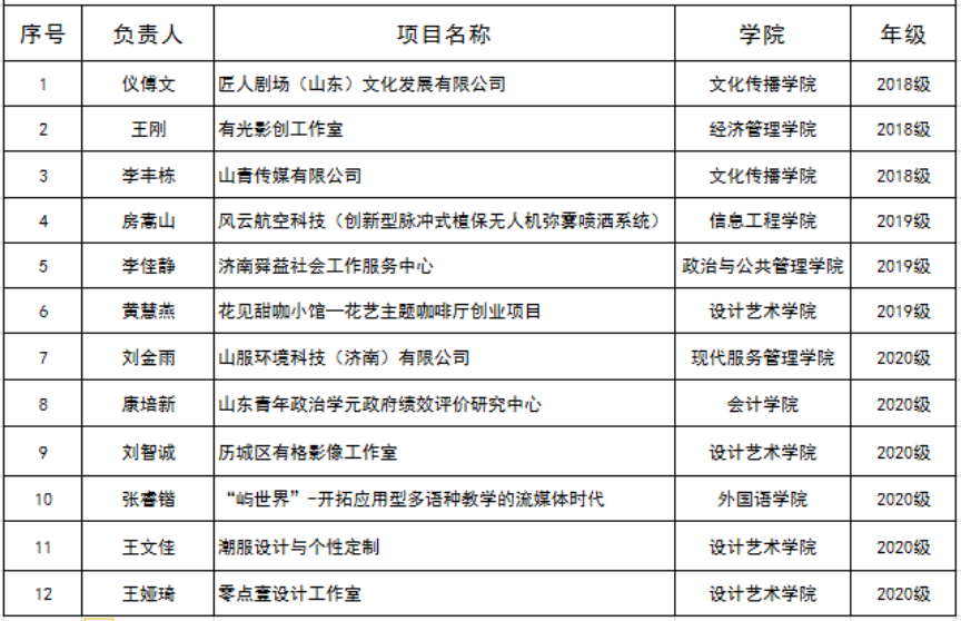 按照《山东青年政治学院青年众创基地运营管理办法》和《关于征集青年众创基地入驻项目的通知》相关要求,经过团队申请、学院评审、路演答辩等环节,结合学校创新创业工作实际,2021年拟入驻青年众创基地项目公示如下: