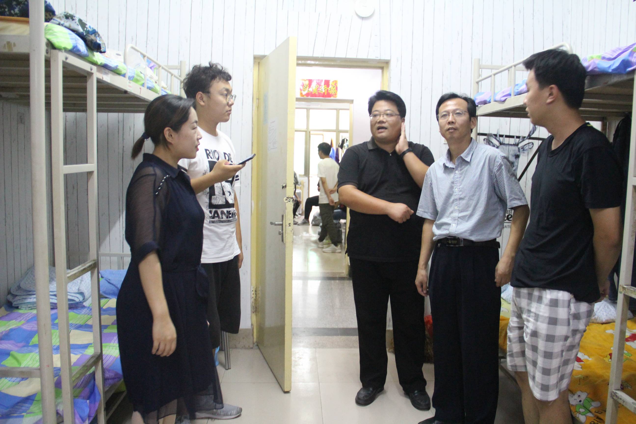 学院师生进社区,推进全方位育人。为帮助新生更好的适应宿舍生活,提供精准的指导和服务。9月1日,学院师生进社区看望新同学。党总支书记夏继周详细询问学生所学专业、家庭情况,并告诉同学们在今后遇到困难一定要及时联系学院领导老师,学院会尽一切努力去帮助同学们解决困难。党总支副书记倪国峰嘱咐同学们在学习生活期间要遵守校规校纪,在日常生活和外出时一定要注意自己的人身财产安全,让家长和老师放心。2019级审计学(数据式审计方向)乔雨说到:我已经开始喜欢这里,希望在接下来的学习生活中动力满满,信心满满,收获满满。