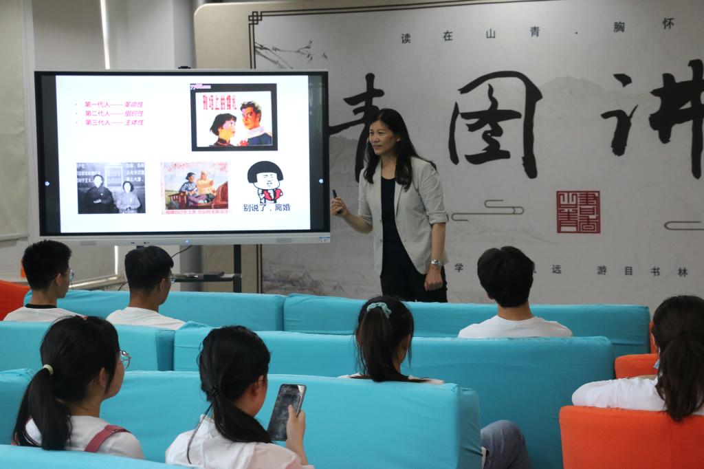 讲座伊始,权福军以一个小故事为切入点,为大家解释了从不同视角看问题是不同的,并以“爱”、“离职”等社会热点词,为大家诠释了每一代人的不同观点和态度。她提到当代青年肩负着强国梦的重任。讲座中,权福军与同学们分享了她的一次井冈山之旅,讲到了井冈山精神,并引用习近平总书记的一段话:“心有所信,方能行远。面向未来,走好新时代的长征路,我们更需要坚定理想信念、矢志拼搏奋斗。”她鼓励青年学生要有信仰、有追求、有理想。知道我是谁?从哪里来?到哪里去?要正确认识自我,探寻自己的人生梦想;要积极认识事物,正确对待人生中的挫折,提升人生品味。权福军用风趣幽默的语言与同学们交流互动,引导同学们深入思考,分享自己的观点和看法,现场气氛十分热烈。