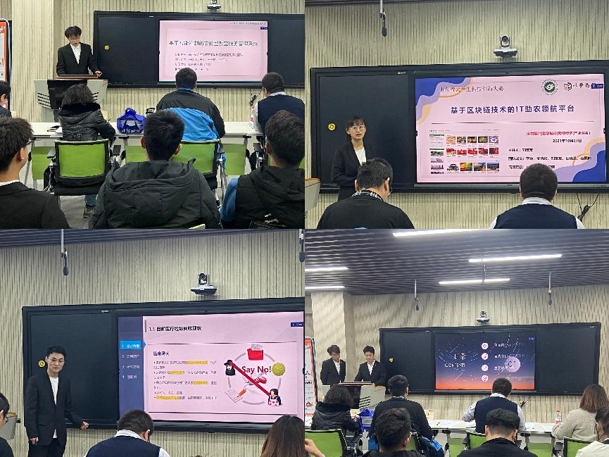 本次选拔赛共有13支队伍参加,参赛作品涉及环境质量监测、IT助农、光伏运维、智能水体等多个主题。选拔赛在参赛成员满含热情的项目解说中拉开帷幕,通过PPT阐述项目产生背景、平台架构及已有成果、项目创新点与关键技术、未来发展规划等内容,向评委老师和同学们全面展示参赛作品。本次选拔在涌现出了不少极具创新性和实用性的参赛作品,充分展现出信工学子的创新思维和学科智慧。最后,评委们分别从参赛作品的科学性、创新性、实用性、成果和效益等进行点评,并针对每个项目的构思创意、市场前景、产品落地等方面提出改进意见。
