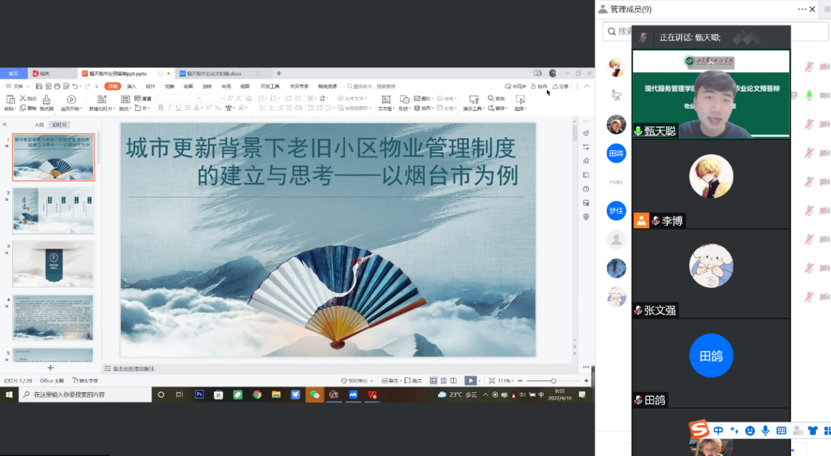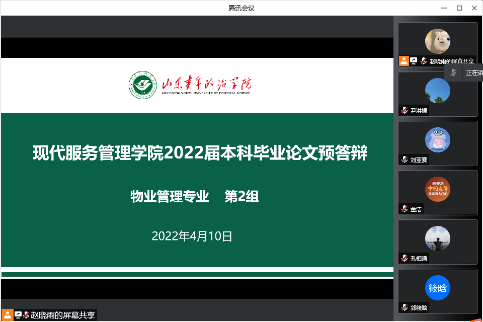 为确保2022届本科毕业论文答辩工作顺利进行,切实提高本科培养质量,根据学校相关要求,现代服务管理学院积极筹划、认真组织、稳步实施,多措并举推进本科毕业各环节工作。4月10日,现代服务管理学院以线上方式,顺利完成了首批190名同学的毕业论文预答辩工作。