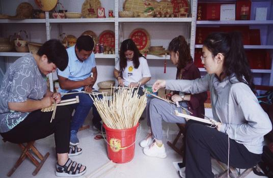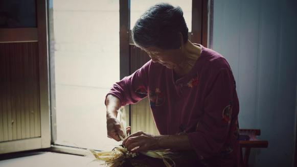 流水不争先,争的是滔滔不绝,传承需要更多年轻的血液。小女儿对手工箅子的热爱成为一把火种,燃烧在刘岳清的心田。他认为传承手工箅子的最好方法就是让更多人从小接触这门技艺,为此刘岳清不断推进“非遗进校园”的进程,让更多的孩子去接触、了解非遗文化。制作手工箅子是世代居住在沂蒙山区人的老手艺,刘岳清生活的平安峪村里,就有不少人会做手工箅子。每当看到村子里行动不便的残疾人、留守妇女和儿童,曾经在福利合金厂的工作经历使他产生了一个的念头——带着他们一起做!72岁的刘奶奶就是其中之一,她不仅会编手工箅子,还擅长玉米皮编织。“有耐心烦的就会了呀。”刘奶奶一边拈起玉米皮编着蒲团,一边说道。刘岳清说:“这样至少能帮他们解决基本的温饱问题,实现灵活就业。看到他们有收入,我自己干的也更有劲头儿。”致富路上不落一人,开着电动三轮挨家挨户送原料、收成品的刘岳清也因此成为村里一道靓丽的风景线。