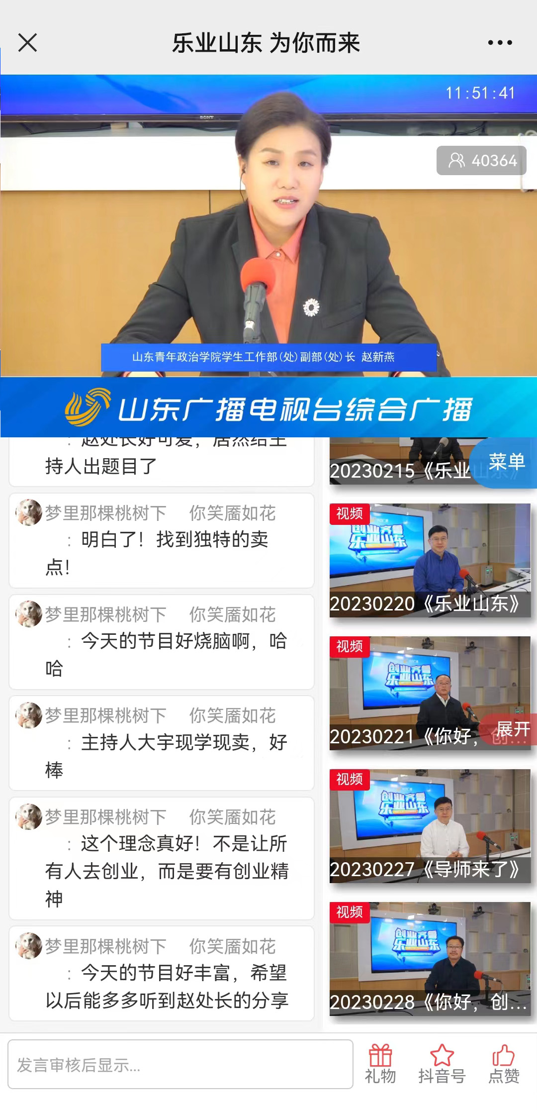3月1日,学生工作部(处)赵新燕受邀参加山东广播电视台综合广播创新创业智慧融合生态链节目《乐业山东》,围绕《商业计划书的撰写与技巧》话题做客直播间,反响良好,实时在线观看人数超过4万人。