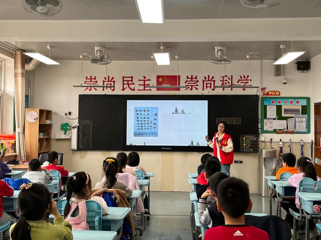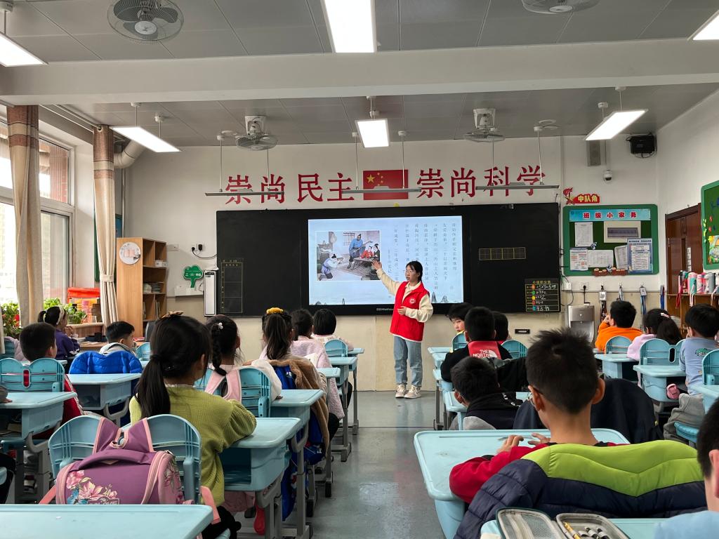 舜是济南这座历史文化名城的重要名片,舜文化是济南文化的重要组成部分。为大力弘扬中华优秀传统文化,激扬文化自信,3月23日,政治与公共管理学院辅导员王子恒,大舜文化协会志愿者马睿哲、张世辉、唐文静一行来到山东师范大学附属小学,面向二年级的小学生们进行舜文化宣讲。