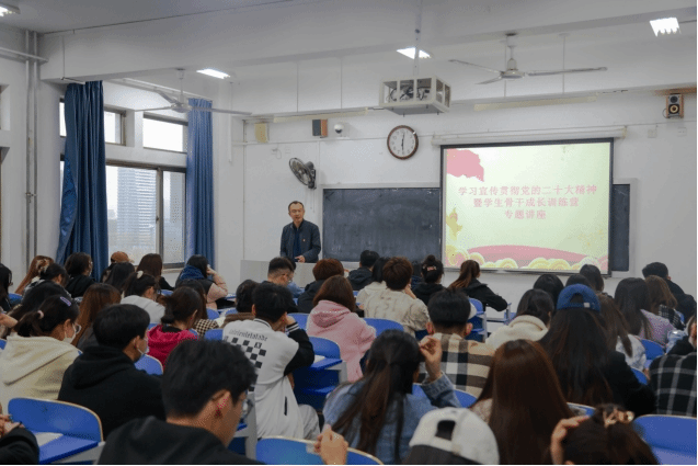 为进一步深学细悟党的二十大精神,更好引领广大青年学子与党同心、跟党奋斗,3月23日,经济管理学院开展“学习宣传贯彻党的二十大精神暨学生骨干成长训练营”专题讲座,本次讲座由经济管理学院党委书记辛德军主讲,学院各年级学生骨干代表80余名参加。