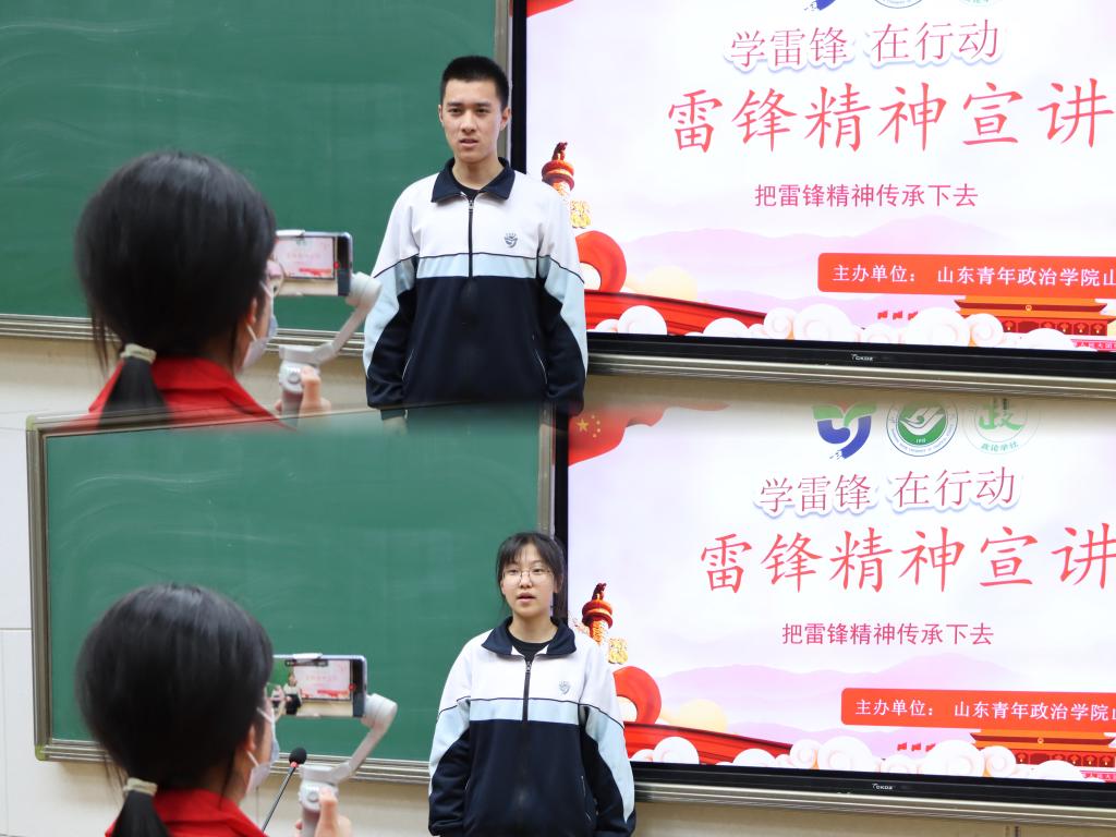 三月春暖花开季,学习雷锋正当时。为进一步推进“我们这样学雷锋”系列活动走深走实,引领青年自觉践行雷锋精神,3月23日,政治与公共管理学院山青政论学社在济南市第九中学组织开展把雷锋精神代代传承下去——雷锋精神主题宣讲活动。山青政论学社宣讲团成员刘梦洁、董鸿铭、方帅均、刘萌宇和济南市第九中学部分团员参加活动。