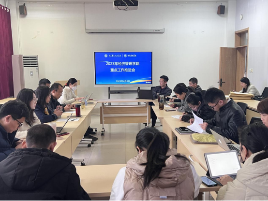 为贯彻落实学校2023年度重点工作任务要求,进一步统一思想、明晰任务、科学谋划学院工作思路和重点任务,4月6日,经济管理学院召开2023年度学院重点工作推进会。学院班子成员及各教研室主任、科室负责人、专业负责人参加会议,会议由经济管理学院院长席岩主持。