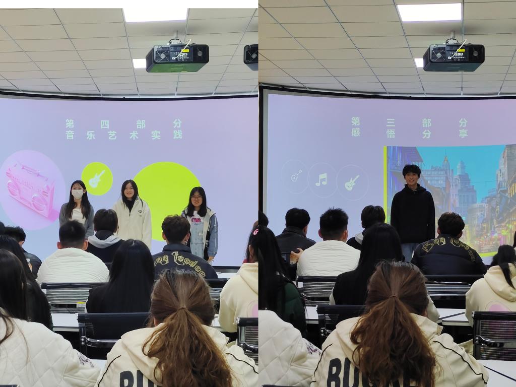 在音乐鉴赏环节,学生们通过歌曲前奏识别《我爱你中国》《有我》等歌曲,考察成员们的音乐储备和记忆能力;“我爱记歌词”环节,学生们通过给出的歌词填补空缺歌词,《我和我的祖国》《年轻的战场》《保卫黄河》……经典红歌与流行歌曲邂逅,是跨时空的精神传承;才艺展示环节,同学们热情高涨,积极参与,展现出昂扬进取的精神风貌和乐观自信、积极向上的生活态度。合唱团成员马仲元表示,合唱团的训练是紧张的学习生活的节拍器,不仅能够发挥自己的特长,缓解学习生活压力,还结交了朋友,是大学生活中美好的回忆。