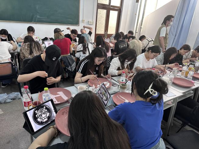 曲冰教授面向专业师生介绍陶瓷文化发展过程、工具使用、方法技法和烧制过程,重点讲解了捏塑、拉坯,绘制山东花釉盘、现代三粉瓷板画、青花瓷器素坯、动物雕塑釉上彩装饰等技法,带师生全方位感受陶瓷艺术文化内涵。同学们仔细聆听、认真观摩,发挥想象力进行“成型”操作练习,利用拉、压、揉、提等各种技法创造出一件件精美作品。创作期间,同学们以小组形式开展研讨,分享制作难点、劳动心得,畅谈新时代青年对践行劳动精神的思考和认识。