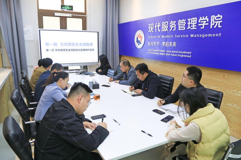 5月11日,现代服务管理学院党委理论学习中心组专题学习习近平总书记关于国家安全的重要论述。学院党委理论学习中心组成员参加会议,各党支部书记、组织员、宣传员列席会议。