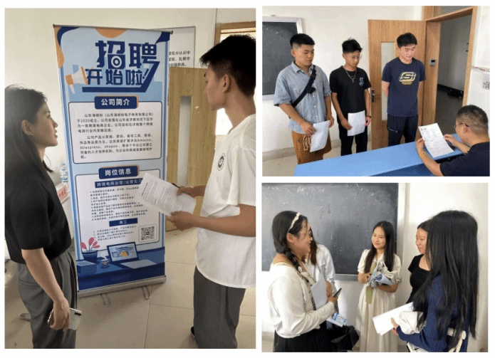为了提升校企合作水平和人才培养质量,学院加强校企合作企业的监督管理,切实保证为专业学生提供充足的实习岗位与就业岗位,本次双选会共有山东星之诚生物科技有限公司、山东海缤纷电子商务有限公司、济南汇咚网络科技有限公司、济南启策国际贸易有限公司、济南春光机械设备有限公司等十余家企业参与,总计提供实习岗位140余个。根据双选会议程,企业代表依次围绕公司概况、招聘制度、用人标准以及福利待遇等方面进行宣讲。同学们认真聆听,仔细甄别,深入思考,加深了对跨境电子商务行业的认识。