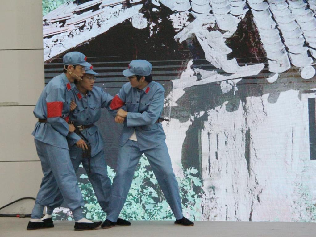 实景式,在实景中感悟初心。《共产党人是不怕死的》生动演绎了人民群众为了抗战胜利勇于同日本鬼子做斗争的英雄情节,面对张大娘的牺牲,现场观众深受感动,热泪盈眶;《绣红旗,红梅赞》讲述了在得知新中国成立后,狱友们深情演绎怀揣爱国之情的革命党人为纪念这伟大的时刻,一针一线绣红旗的别样岁月;诗歌朗诵《青春中国》,字里行间都透露着对祖国深深的爱,激励我们争做有理想,敢担当,能吃苦,肯奋斗的新时代青年;《红船精神》将中共一大搬上舞台,恢宏再现了中国共产党人开天辟地、革命起航的光辉历程,将现场的氛围推向高潮。
