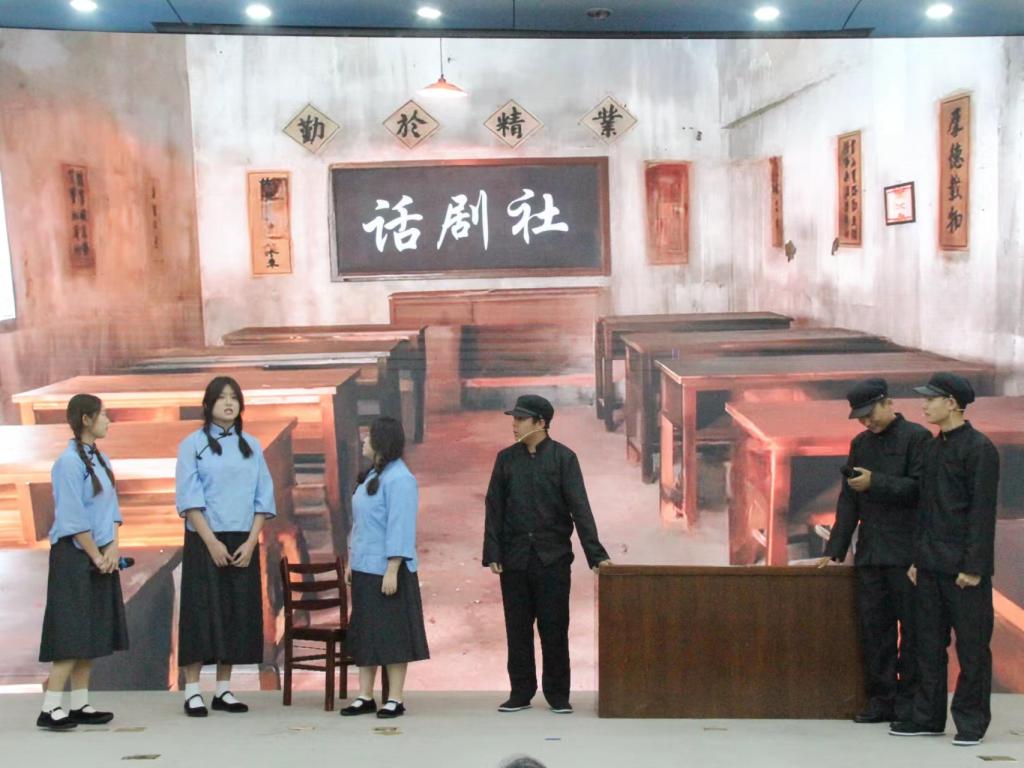 沉浸式,在情景中洗涤心灵。《刘胡兰》再现了那段“胡兰十五女儿妆,赴难从容敢断肠”的光辉历史,让我们感受那份浓浓的家国情怀;《战火里的大学生》生动展现了战争年代中的大学生对信仰、对祖国的不懈追求;《五四运动》生动展现了青年的精神与活力,以思想照亮前行之路,洗涤心灵之尘,激发奋进之力。