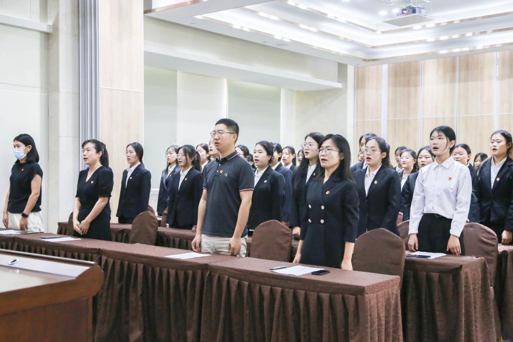 仪式在激昂的国歌声中拉开帷幕。薛卿对全体成员提出三点要求与期望。一是切实增强政治意识、安全意识、纪律意识与服务意识,以高水平、高涵养、高质量出色完成此次服务任务;二是时刻牢记“融现代、亲服务、懂管理”的专业培养要求,在工作中发扬务实肯干、坚持不懈、精雕细琢的服务精神,展现山青学子的良好精神风貌和专业素养;三是丰富组织生活,切实发挥临时团支部组织引领作用,定期组织开展团日活动,引导全体成员在思想上经受洗礼,在工作中磨练意志,在实践中增长才干,以优异成绩圆满完成暑期社会实践任务。