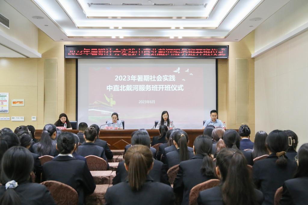 为推进学习贯彻习近平新时代中国特色社会主义思想主题教育走深走实,推动思政育人与实践育人深度融合,引导学生在实践中传承红色基因,激励广大学子成长成才,6月13日,现代服务管理学院在礼行楼303会议室举行了2023年暑期社会实践中直北戴河服务班开班仪式。现代服务管理学院党委副书记薛卿,团总支书记、学工办主任窦玉明,辅导员代表及2023年北戴河服务班全体学生参加。