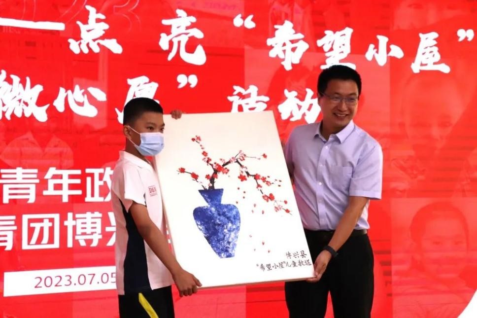 为推进学习贯彻习近平新时代中国特色社会主义思想主题教育走深走实,落实习近平总书记寄语希望工程实施30周年重要精神,进一步扩大“希望小屋”帮扶成效,擦亮“希望小屋”儿童关爱项目品牌,实现“希望小屋”建设与志愿帮扶同频共振、协同发力,全面助力乡村振兴。7月5日,校团委书记孟祥佳带队赴博兴县开展“牵手关爱”——点亮“希望小屋”儿童“微心愿”活动。博兴县县委副书记李亚光、团县委书记程成、团县委副书记安然和朱学常参加活动。活动由博兴县团县委书记程成主持。