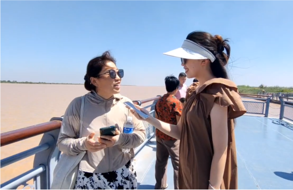 黄河奔涌,汇入渤海。前往黄河入海口的成员在工作人员的热情解说下,游览黄河自然风情,亲眼见证了“河海交汇、新生湿地、野生鸟类”等弥足珍贵的世界级旅游资源。沿途两岸的野草、柽柳、灌木,次第交错生长,到处可见的芦苇荡和时不时飞过空中的鹳鸟,用最原始最自然的方式,展现黄河与大海的交汇之美。许多游客表示,能亲眼看到波澜壮阔的母亲河,感受黄河文化,这一趟不虚此行。