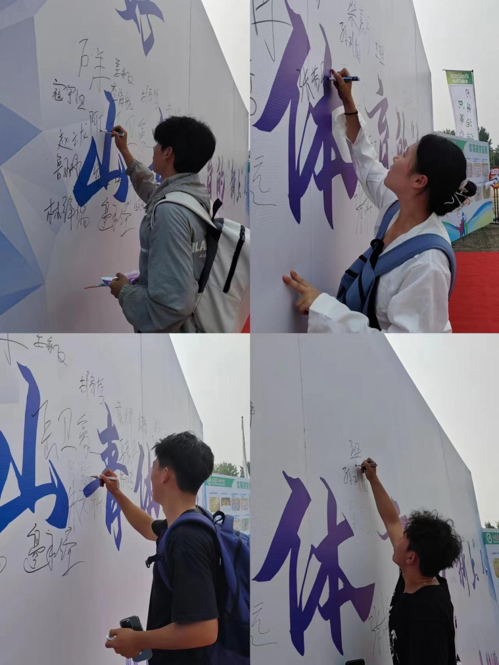 迎新现场,体育部精心设计,多种形式“文化迎新”。体育部大厅通过布置奖杯、奖牌展示部门过往荣誉,帮助新生了解专业发展、建立专业自信,并在报到站点设置“你好,山青体育‘新上’人”签名墙欢迎每一位报到的新生,并记录下与家人的合影,学长们“以武会友”与萌新切磋武艺,“志存高远-立定跳远”纵身一跃,起跳、腾空、落地,承载着对大学的新期望,追“球”卓越,尽显球技的同时更是对体育精神的诠释。情深意暖、精彩纷呈的迎新现场,共同见证在山青的“启程之路”。