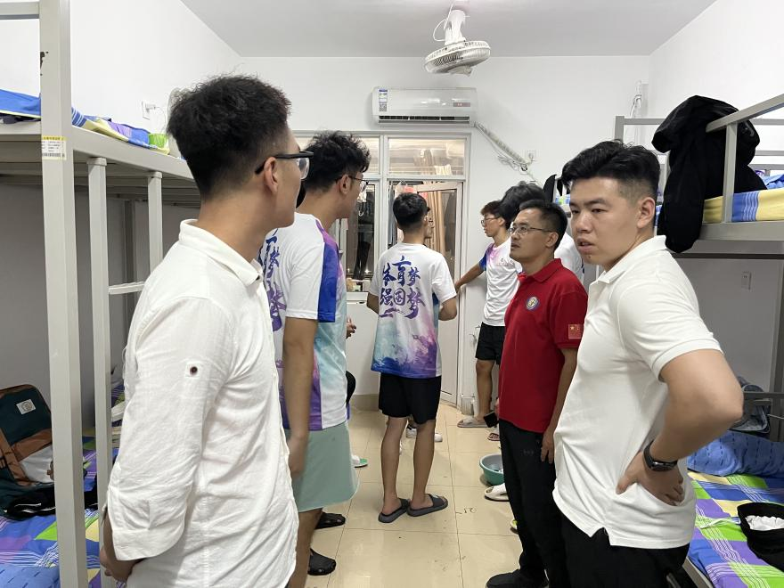 为更好的了解新生宿舍安全及卫生情况,确保新生入学各项工作的有序、平稳开展,体育部直属党支部书记韩相伟、辅导员及新生班主任深入宿舍慰问新生,亲切询问同学们对新环境适应情况。韩相伟就生活日常、学业规划、寝室安全等方面与同学们交流互动,并叮嘱大家要养成良好作息习惯,遵守校园规定,以良好的精神开启大学校园中的崭新征程。