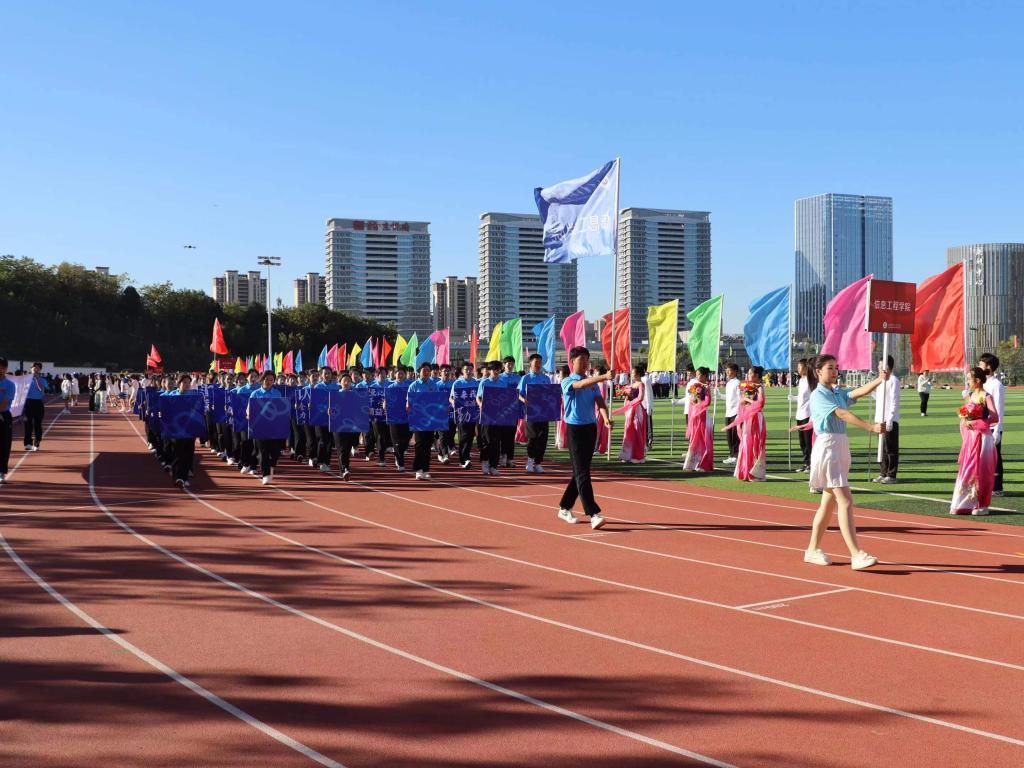 信息工程学院共选派38名教工运动员、49名学生运动员、58名表演方队成员、60名彩旗方队成员及32名志愿者参加本届运动会,信工师生身影活跃在运动会现场,身体力行展示运动强健体魄,科技引领未来。