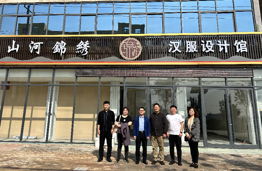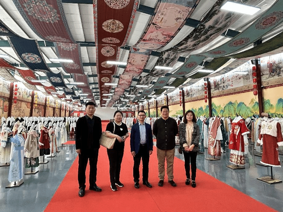 菏泽市曹县大集镇是中国首批“淘宝镇”,其电商产业发展极具特色,主营业务为汉服生产,具有“自产自销”一体化产业链条。在大集镇,电商办相关工作人员为来访一行讲解了大集镇电商发展的历程,带领参观了大集镇产业园区内汉服的款式设计、布料加工、绣花印花等制作过程。随后,一行5人来到2013级服装与服饰设计专业校友陈龙创办的企业“山河锦绣”汉服设计馆参观交流。校友陈龙为大家讲述了企业的由来、现状以及未来的规划,双方就专业建设、企业发展、未来合作等问题进行深入交流研讨,积极探索资源共享、平台共建、人才共育、携手共赢的校企合作模式。