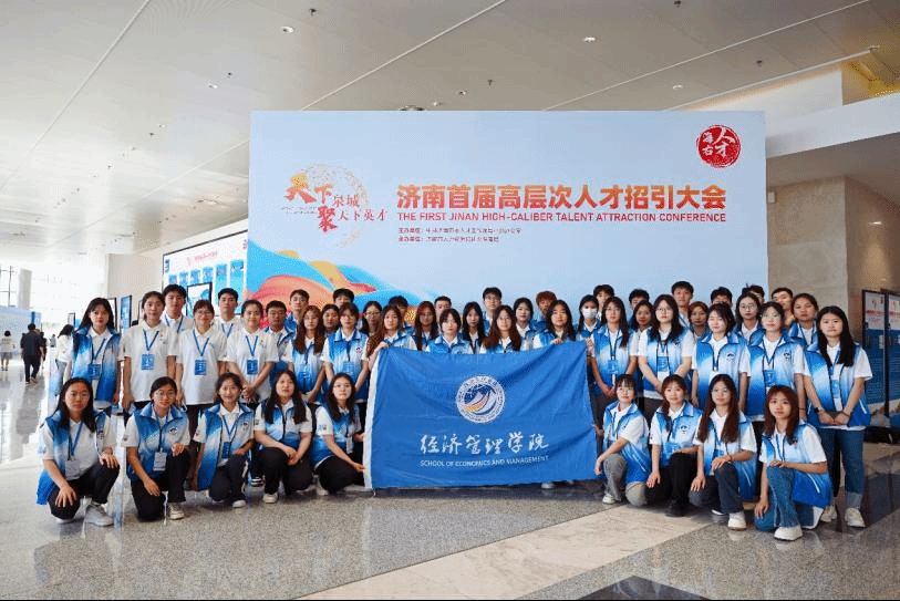 为贯彻落实习近平总书记对学校思政课建设作出的重要指示,把课堂教学和实践教学有机结合,党建引领团建赋能,5月11日,经济管理学院积极承担由济南市人社局主办的“天下泉城聚天下英才”济南首届高层次人才招引大会志愿服务工作,发挥学生党员先锋模范作用,深化志愿服务实践与人才培养。经过严格选拔,70余名学生党员及志愿者参与了大会嘉宾接待、会务引导、现场咨询等各项志愿服务工作。