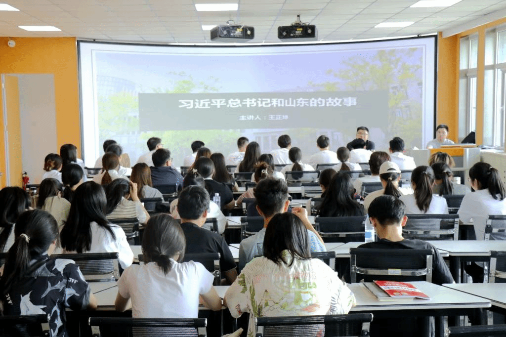 王正坤在课上讲到,习近平总书记再次亲临山东视察,为山东发展把航定向,赋予了山东“定好位、挑大梁”的使命责任,习近平总书记重要讲话精神与对山东工作的系列重要指示要求,为推进中国式现代化山东实践指明了前进方向、提供了根本遵循。他从“打造乡村振兴的齐鲁样板”“创新发展与新旧动能转换”“建设海洋强国”“黄河流域生态保护和高质量发展”“能源的饭碗必须端在自己手里”“大力弘扬沂蒙精神”“繁荣中华优秀传统文化”等七个方面展开,勉励广大青年要以习近平新时代中国特色社会主义思想为指引,坚定不移听党话、跟党走,以习近平总书记视察山东重要讲话重要指示精神为重要遵循,始终保持永不懈怠的精神状态和一往无前的奋斗姿态,坚定信心、埋头苦干、接续奋斗。
