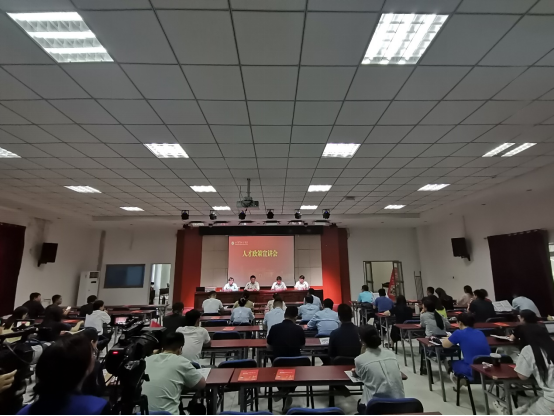 为深入贯彻落实学校“1158”发展战略,充分发挥地方人才政策优势,更好地为高层次人才做好服务保障,学校人事处(人才工作办公室)特邀请中共济南市历城区委人才工作领导小组办公室、山东稼轩人才发展集团于6月5日下午来我校开展济南市、历城区等人才政策宣讲。各学院分管人才工作的班子成员、博士代表以及各单位人事专员80余人参加了宣讲会。同时,为了扩大人才政策宣讲受益面,便于更多教职工了解、掌握人才政策,宣讲会还采取了线上同步直播的方式进行。