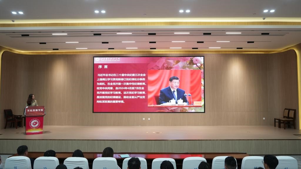 文化传播学院党委将全面渗透、全员参与、全程培育的理念融入党纪学习教育工作中,通过不断创新教育方式、拓展教育途径、丰富教育载体,持续探索将专业育人与党性教育、廉洁教育相结合的创新教育模式。同时,学院聚焦“一融双高”建设,继续抓好党纪学习教育关键群体,扎实推进党纪学习教育与廉洁教育走深走实。