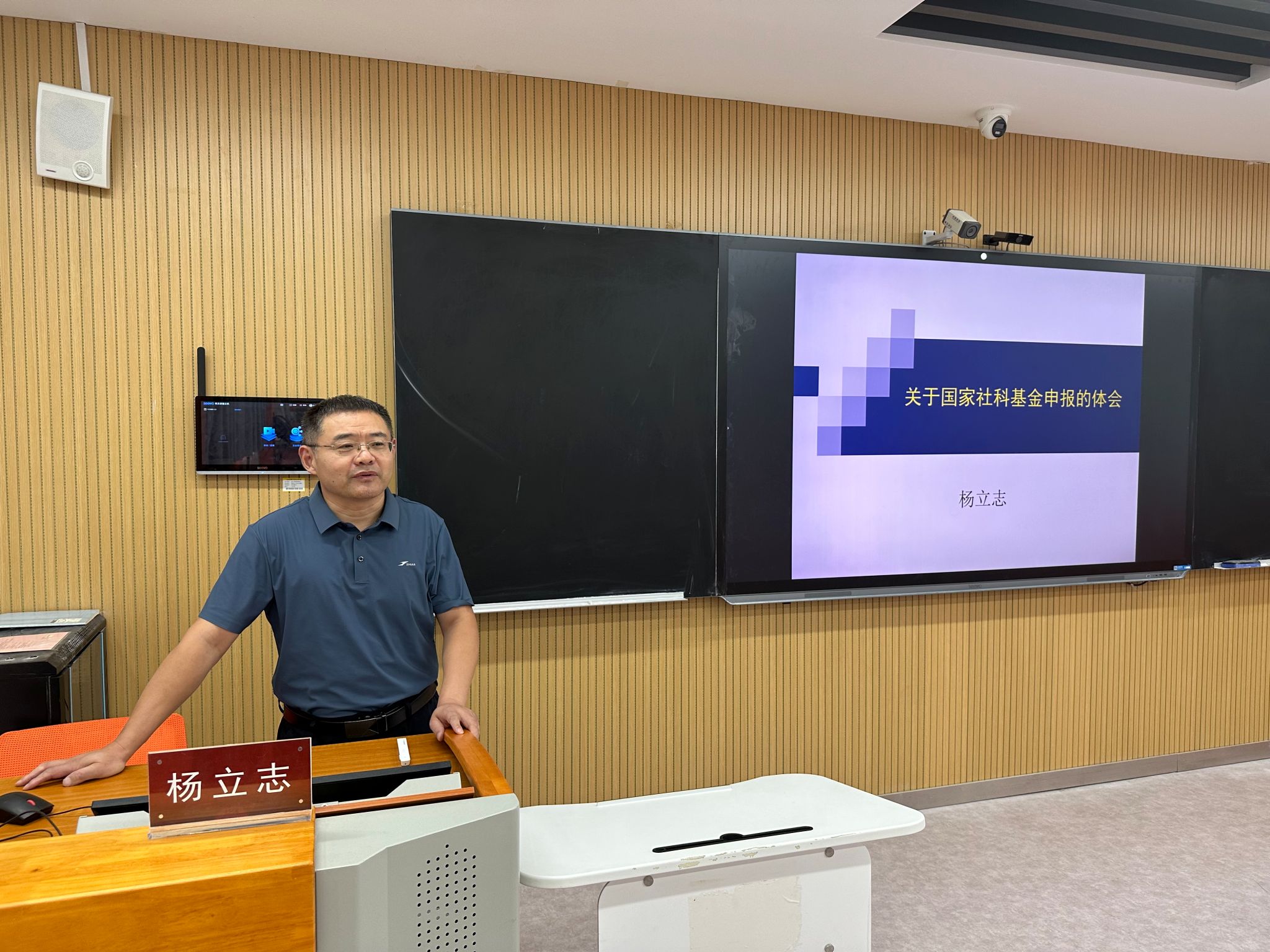 济南大学马克思主义学院院长杨立志教授围绕国家社科基金项目申报作了专题辅导报告。杨教授结合自身成功申报经验,从项目选题、论证技巧等方面细致讲解了课题申报方法和相关技巧。报告结束后,杨教授与教师们进行了亲切的交流与讨论,并针对老师们提出的问题给予了耐心细致的解答。