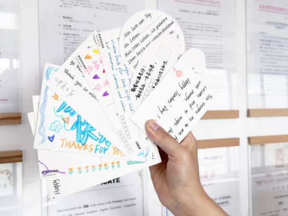 声声祝福暖师心,多语贺卡感师恩。九月的秋风送来阵阵舒爽,学生们的祝福增添浓浓暖意。广大外语专业学子发挥专业优势,手写多语贺卡,用鲜艳的色彩、精致的图案与真挚的文字表达着对老师们的感恩与祝福。每一笔描绘,都是对课堂上的谆谆教诲的铭记;每一句祝福,都是对老师们辛勤付出的礼赞。那些美丽的图案、暖心的文字,仿佛诉说着课堂上那一幕幕感人的瞬间。