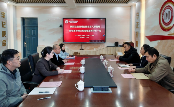 12月18日,历城区退役军人事务局历城革命烈士纪念馆服务中心主任武继海一行3人来校开展调研。学校党委委员、组织部部长丁萍,组织部正处级组织员、副部长曹亮,马克思主义学院党委书记乔海波等参加活动。