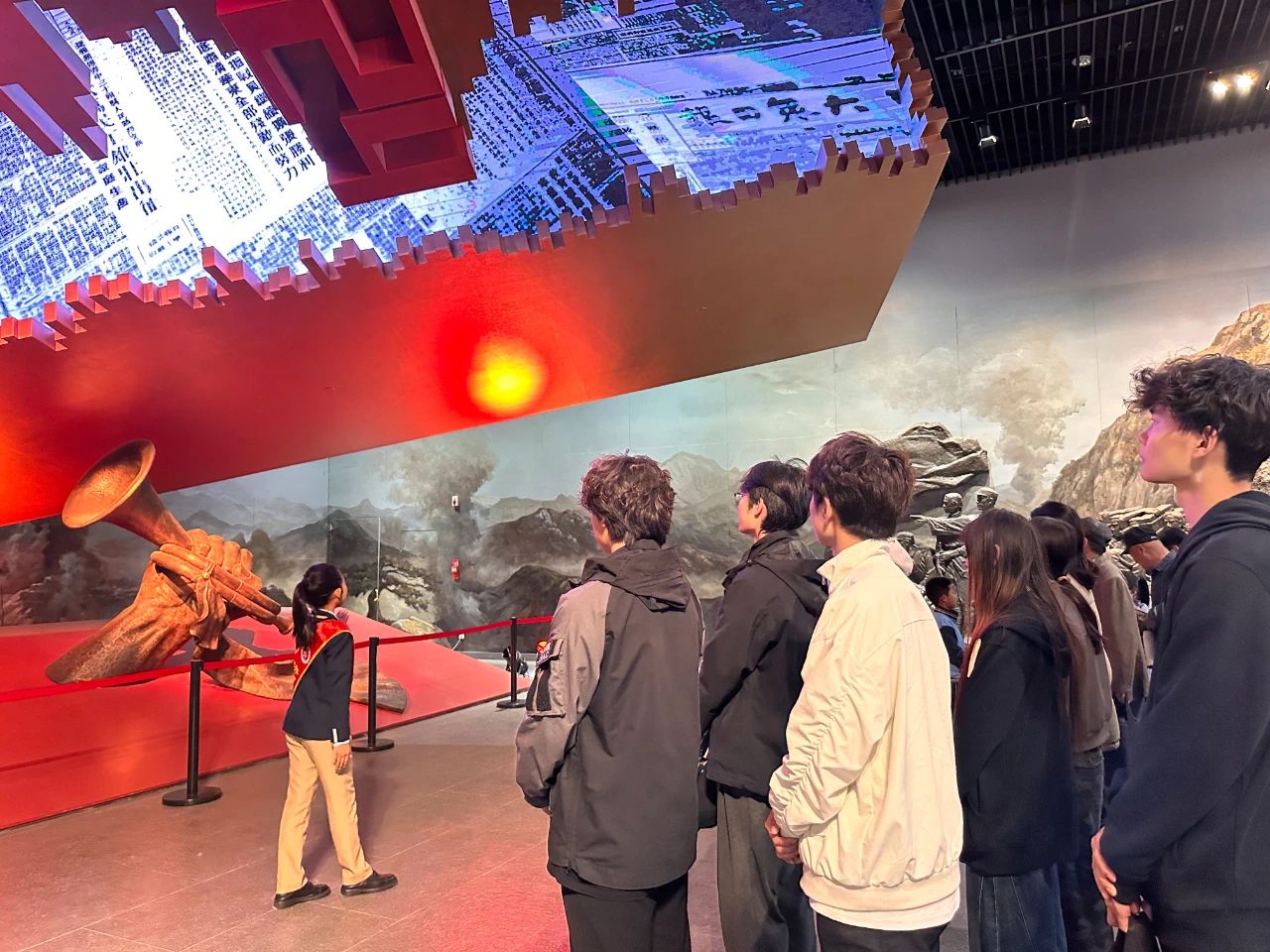 随后,参观济南战役纪念馆。它作为承载着深厚历史底蕴与革命精神的爱国主义教育示范基地,其内部规划了多个主题展区,展陈内容丰富多彩,通过详实的历史资料与生动的展现形式,将那段烽火连天的岁月鲜活地呈现在世人面前,给予每一位参观者以心灵深处的强烈震撼与深刻启迪。2024级音乐与舞蹈学类专业学生叶硕感慨:“看到布满弹孔的军用水壶,才真正理解‘牺牲’二字的分量。英烈们用生命诠释的忠诚担当,正是我们艺术创作的精神源泉,更是我们前行的坐标。”