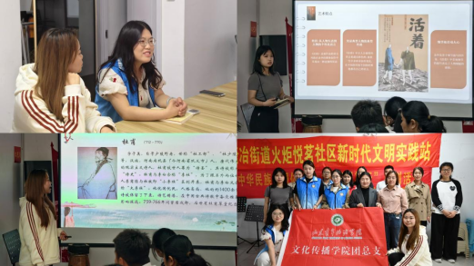 通过“阅读春光,品味经典”21天春日读书打卡活动、“书香社区,共享阅读之乐”社区读书交流活动以及“声临其境·诗韵传薪”线上读诗会等活动,共谱阅读新篇,为校园文化注入蓬勃生机。在“阅读春光,品味经典”21天春日读书打卡活动中,学生们每日坚持阅读并打卡记录感悟,通过明信片分享书评,最终撰写心得体会,提升了文学素养与精神境界。“书香社区,共享阅读之乐”活动中,文传学子走进火炬悦茗社区,为居民解读名著、领诵古诗、整理书籍,让书香飘进千家万户,为基层文化建设注入青春力量。“声临其境·诗韵传薪”线上读诗会则鼓励学生以朗诵、配音等形式诠释经典诗篇,为经典注入时代解读,彰显了青年学子的创意与才华。