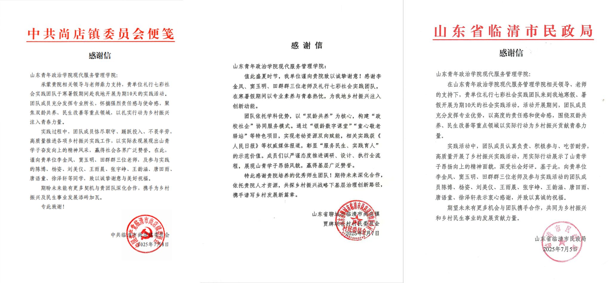 为深入学习贯彻习近平总书记关于青年工作的重要思想,充分发挥共青团实践育人在高校“大思政”工作体系和“三全育人”工作格局中的重要作用,2025年暑期,现代服务管理学院围绕“立德树人、知行合一、服务社会”目标,组建56支社会实践团队奔赴齐鲁大地,通过服务创新、文化惠民、科技支农等多元形式,将专业所学转化为服务基层的青春实践,在火热的社会课堂中坚定理想信念、锤炼过硬本领。