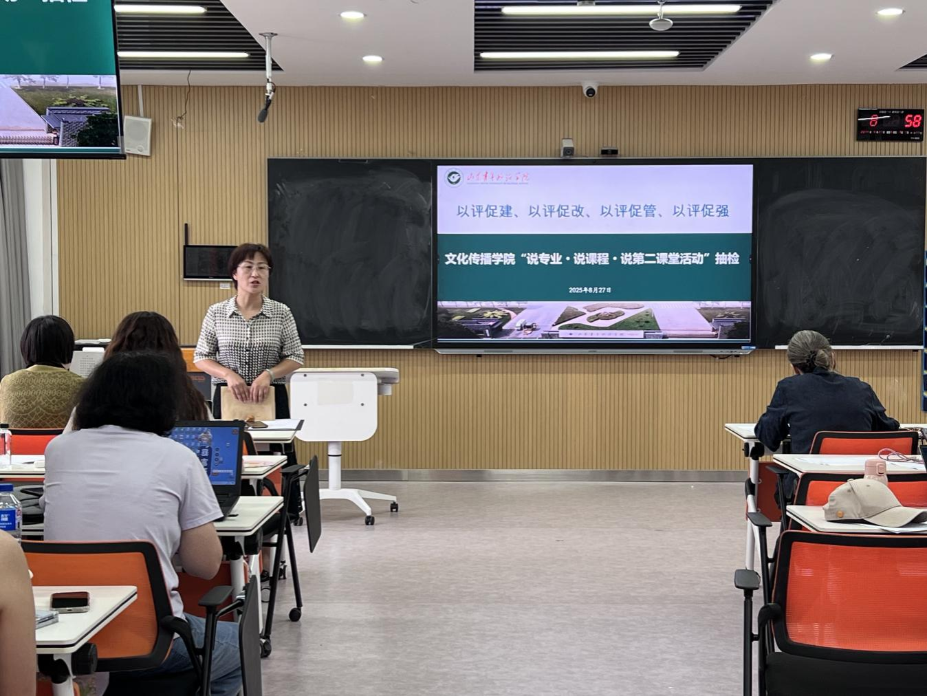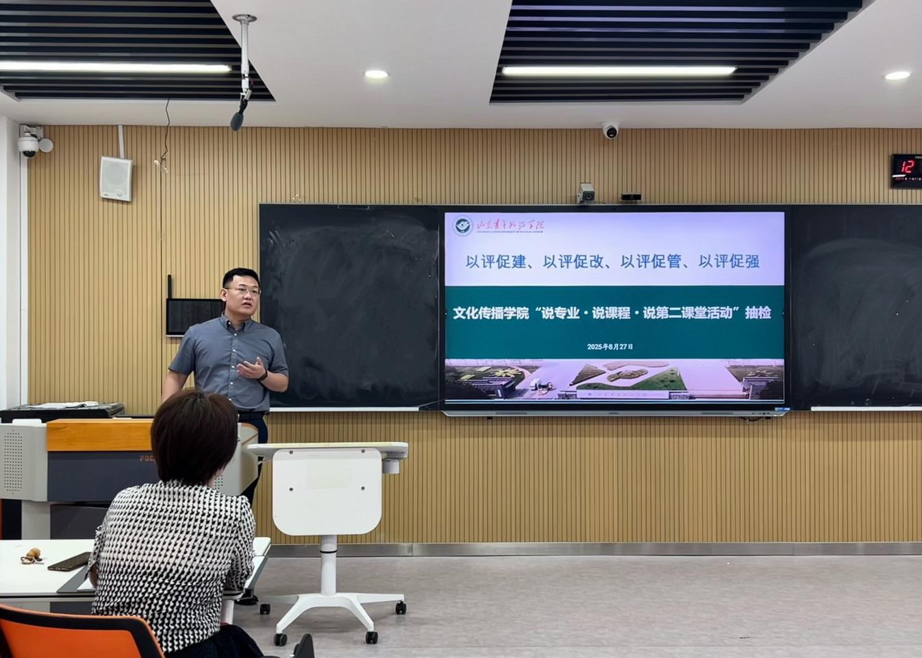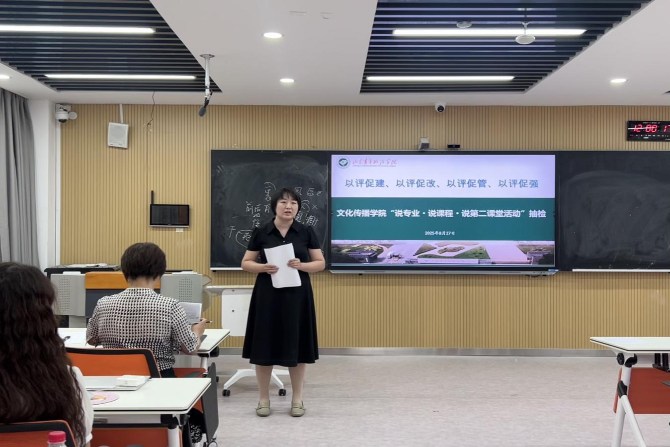 为推进专业内涵建设向纵深发展,塑造具有高辨识度和竞争力的专业特色,全方位、多层次提升教师的教学能力以及人才培养质量,全力迎接学校本科教育教学审核评估工作,8月27日,文化传播学院开展“说专业·说课程·说第二课堂”抽检活动。教务处处长白洁、教学质量监控与评估中心副主任闫春宇莅临现场指导工作。学院全体领导班子出席,学院全体教师参加。活动由学院副院长孙晓彦主持。