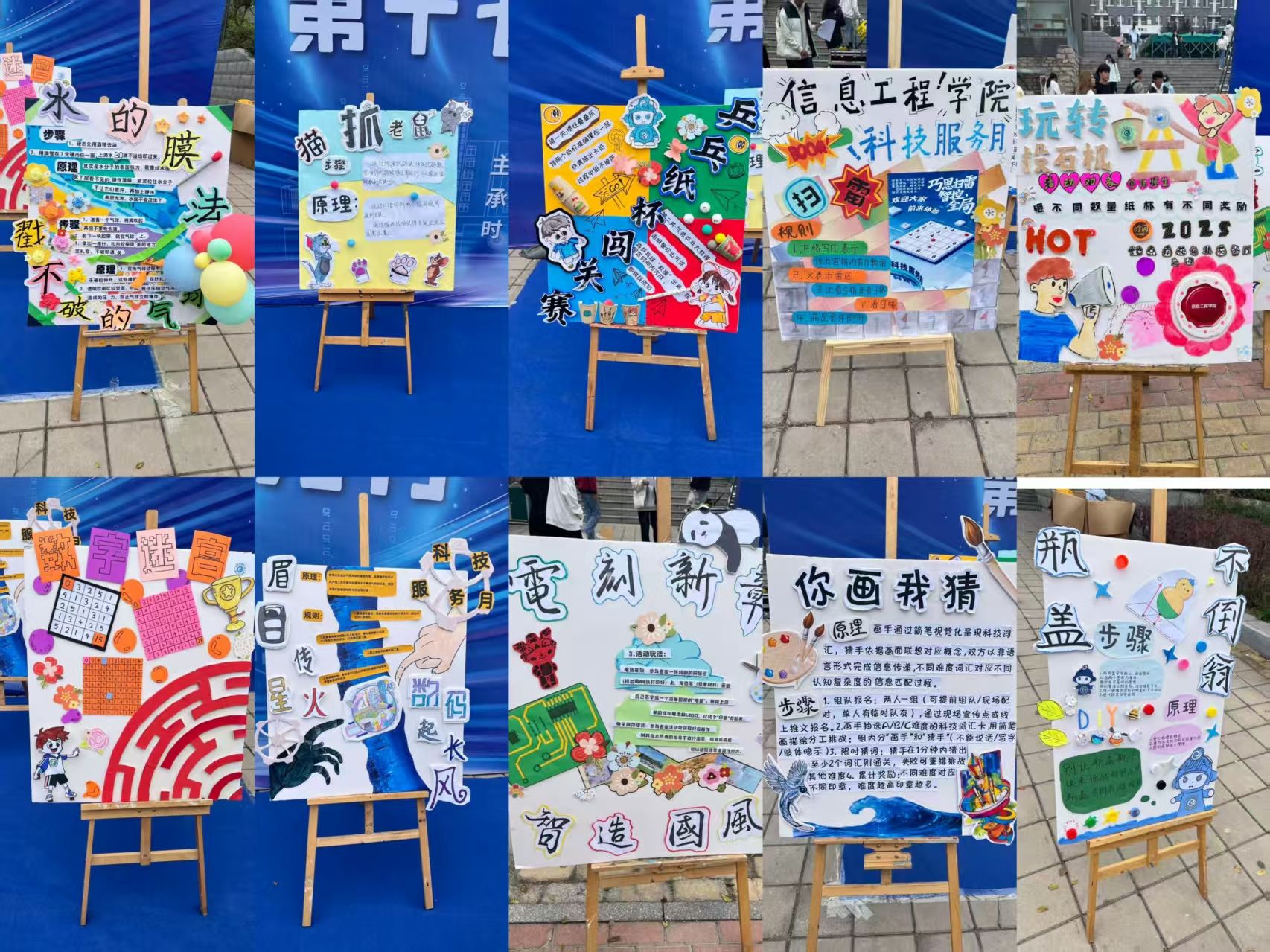 本届科技服务月内容丰富多彩,涵盖实践、益智与体验三大类板块共计11项活动。活动现场吸引了众多学生驻足体验。同学们既可投身投石机创意竞技、逻辑“扫雷”挑战,也可体验数据挖掘的编程世界,或在“IT义诊”中解决电脑软硬件问题。此外,“水的‘膜’法”实验、瓶盖不倒翁、科技问答闯关等项目也同步开展。为提升互动性与参与感,活动还设置了定制兑换券机制,师生通过参与项目获取兑换券,可至奖品区换取相应礼品。校园内还隐藏多个“青小蓝”NPC互动点,完成指定任务即可获得额外奖励,激发师生开启一场别开生面的“校园寻蓝之旅”。值得特别关注的是,在活动筹备阶段,各版块的活动海报均是由同学们利用旧展板与闲置物料创意改造而成,既体现了环保理念,也呼应了本届“创新赋能,绿色实践”的主题,成为现场一道独特的“绿色风景线”。
