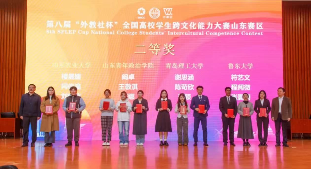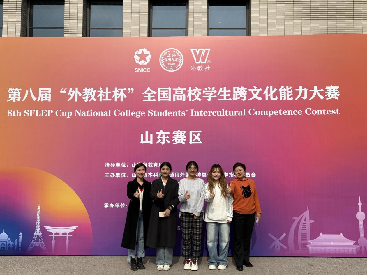 10月25日至26日,第八届“外教社杯”全国高校学生跨文化能力大赛山东赛区(本科院校组)比赛成功举行。由外国语学院学生阚卓、经济管理学院学生王敬淇、张娜组成的团队荣获山东赛区二等奖。外国语学院教师丛丽君、张文馨和范献文担任团队指导教师。