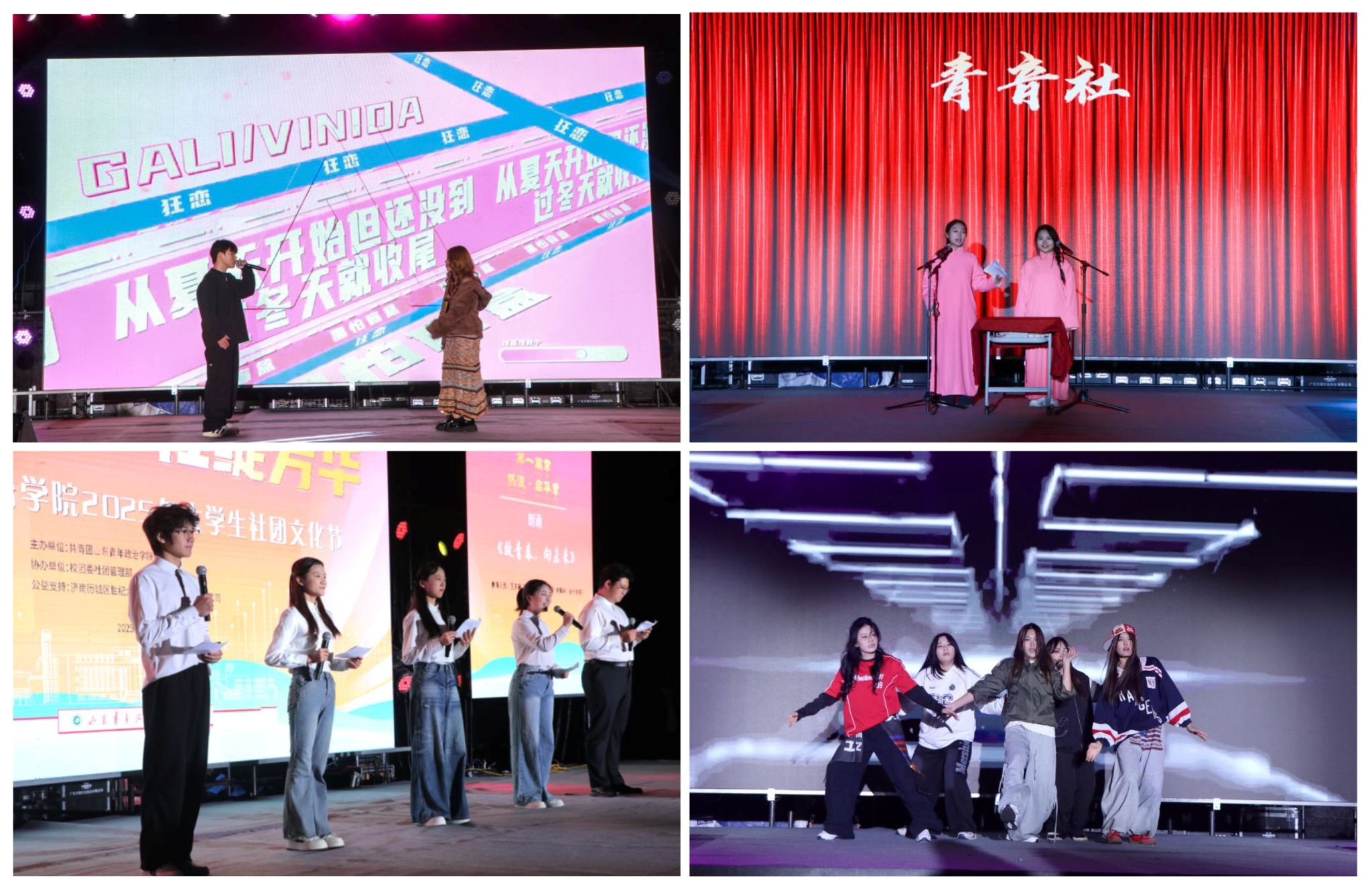 作为承接社团纳新热潮,展示社团风采特色的重要活动,以“季秋留韵 社绽芳华”为主题的大学生社团文化节于10月30日晚在东运动场同步开展,来自九个学院、十多个社团的学子联袂献上14个精彩节目。“展台+舞台”的双重赋能让纳新活力倍增,“学院+社团”的联动模式让青春创意碰撞。