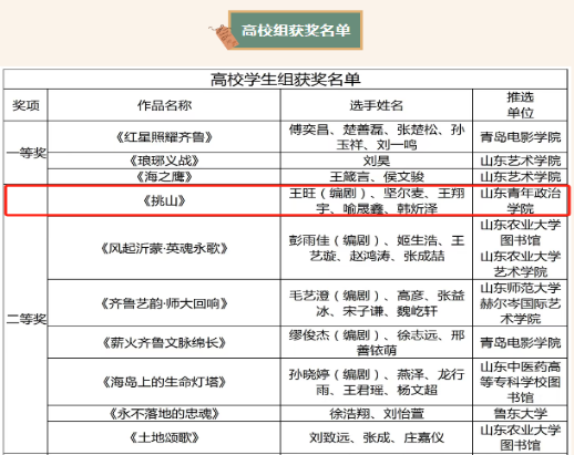 由山东省文化和旅游厅主办,山东省图书馆、山东省话剧院、山东师范大学联合承办的2025齐鲁文化情景阅读创意大赛决赛于近日落下帷幕,学校选送的作品《挑山》经过激烈角逐,最终荣获高校组二等奖。同时,该作品于10月26日受邀参与2025齐鲁文化情景阅读创意大赛颁奖典礼暨优秀作品展演活动,亮相山东省话剧院大剧场。